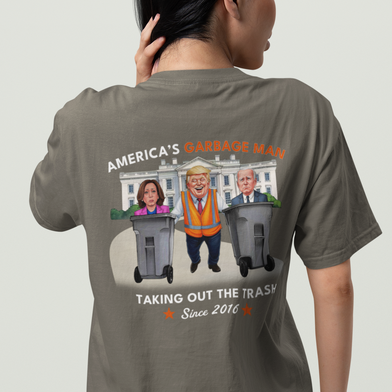 This tee is for the unapologetic patriots who are done with the incompetence and clown show of the last few years. Featuring a bold, satirical design of Trump hauling Biden and Kamala straight to the curb, this shirt is part political statement, part hilarious truth bomb.